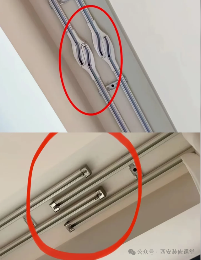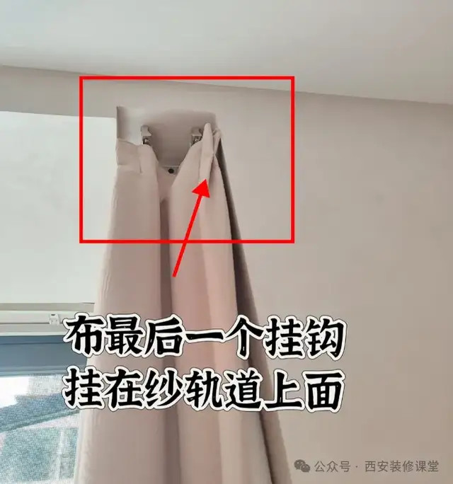 第七,实现不了窗帘盒和嵌入式轨道,可以采用超薄轨道搭配韩式可调节挂钩,让上方严丝合缝,满足不漏光。
