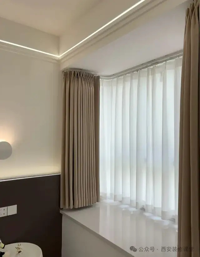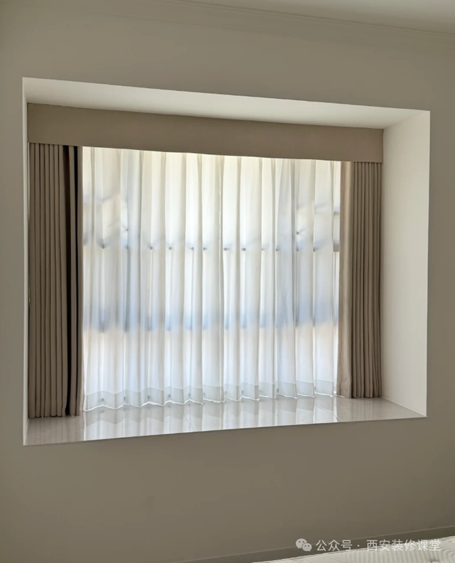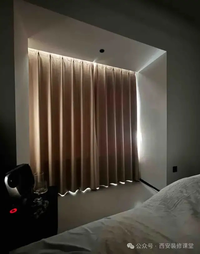 第八,窗帘盒太浅漏光,可以加帘头,要加到靠窗户内侧才能保证窗帘盒浅不漏光,就是视觉不太美观。