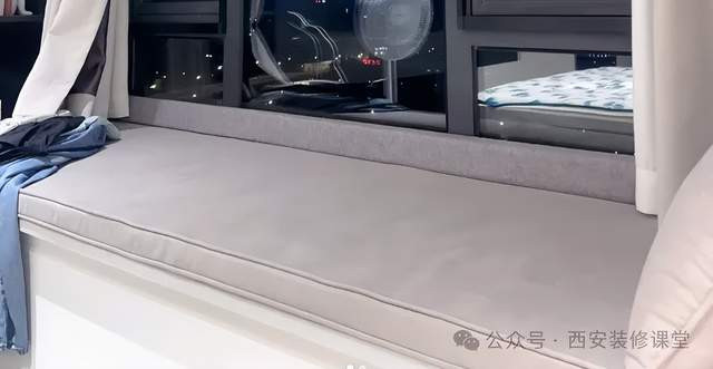 第五,做飘窗垫预留背后窗帘位置,保证下方不漏光。