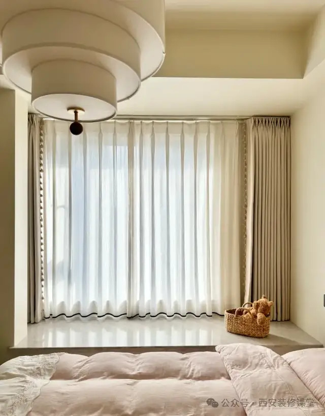 你家飘窗窗帘是靠窗装还是满墙装?有没有遇到漏光问题?评论区聊聊。